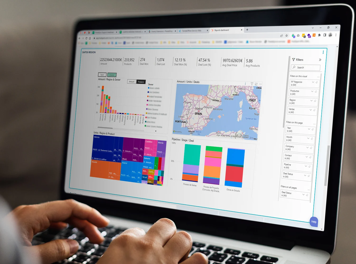 • Informes en tiempo real, que muestran datos actualizados al instante.