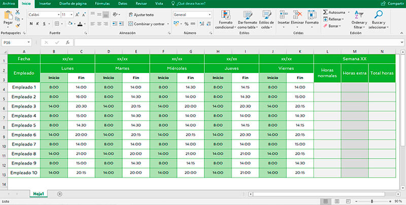 | Empleado | Entrada | Salida | Horas trabajadas |
